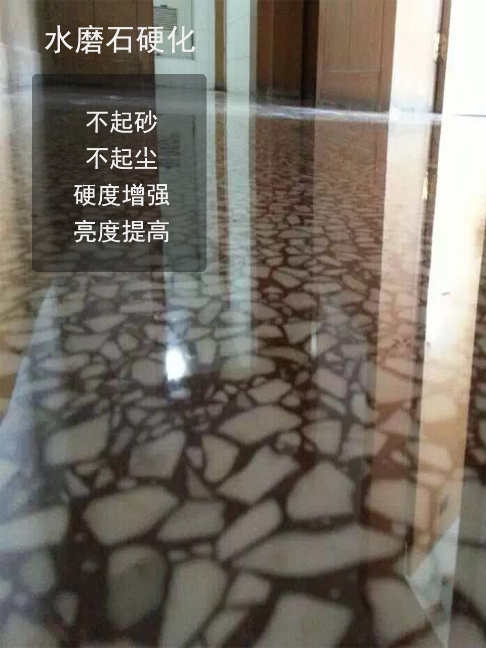地面起砂處理劑中的主要成分通過與水泥混凝土中的硅鈣離子進一步反應,使其分子結構進一步密實,從而提高地面的密實度、硬度,解決混凝土與水磨石地坪的起砂問題。